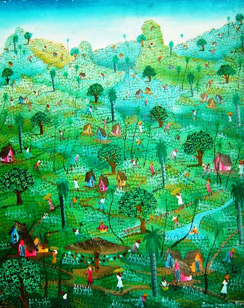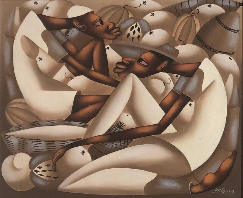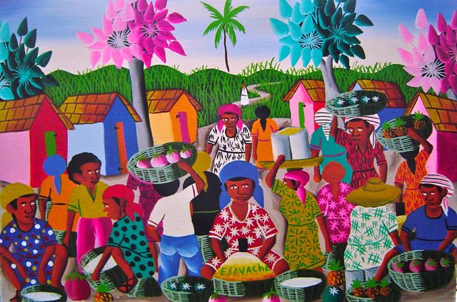 Antoine is a Haitian artist who paints crowded market scenes and figures...