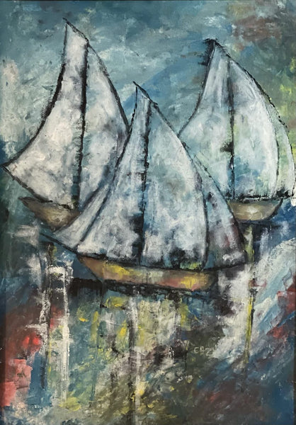 Cazil 30"x20" Three Boats c1990 Acrylic on Canvas #1HL