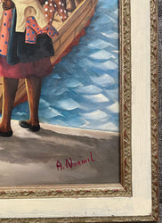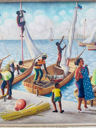 Andre Normil (1934-2014) 20"x30" Scene At The Port c1960 Oil on Masonite Painting #1GSN-NY