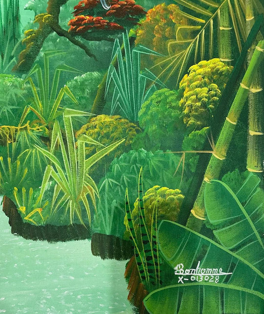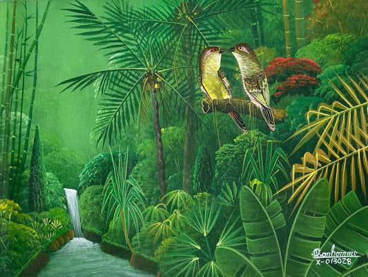 Albott Bonhomme 24"x20" Birds Family Acrylic on Canvas Unframed Painting #3JN-HA