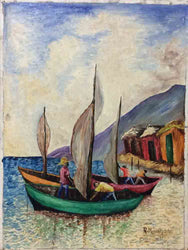 Roussel Moussignac 14"x11" Three Boats 1972 Oil on Board #1-2-95MFN