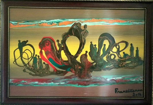 Franck Etienne - Franketienne 16"x24 Abstract 2016 Acrylic on Board- Framed #1JN-HA
