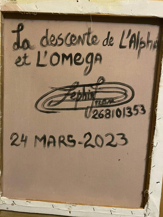 Frantz Zephirin 26.5"x22.50 "La Descente de l'Esprit et l'Omega" 2023 Oil on Board- Encrusted Painted Frame Painting #13JN-NY