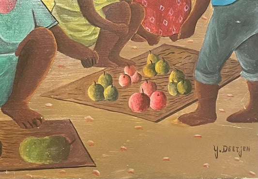 Yves Deetjens 16"x20" The Green Female Seller 1980 Oil on Board Painting #1-2-95MFN