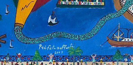 Prefete Duffaut (Haitian, 1923-2012) 10 3/4 x 7 3/4 x 5 ½ Unique Hand-Painted Wood Shoe Shine Box #1PN