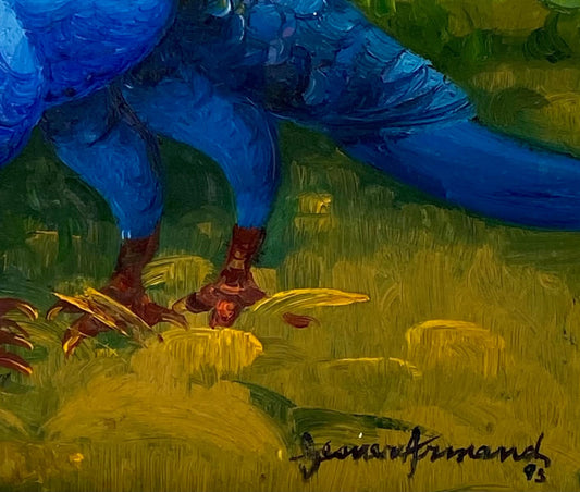 Gesner Armand (1936-2008) 10"x12 The Blue Pigeon Couple 1993 Oil on Board Painting Unframed #1AB