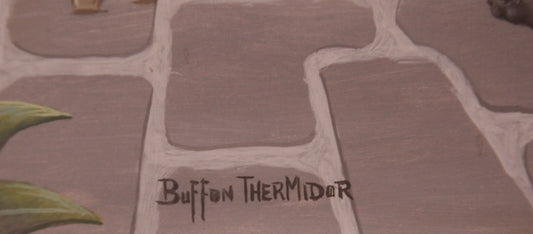 Buffon Thermidor 20"x16" Girl Feeding Chickens 1990 Oil on Board Painting#1TP