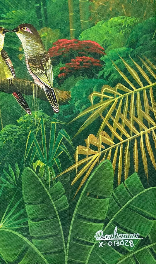 Albott Bonhomme 60"x40" Paradise with Birds- Painted 2" borders 2023 Acrylic on Canvas Painting #40MFN