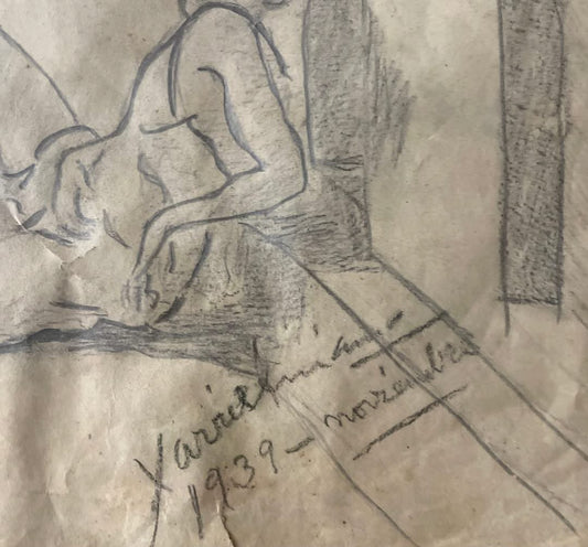 Xavier Amiama (1910-Haiti 1969)8.5"x 5" UNTITLED 1945 Crayon Ink on Paper Drawing #3MFN