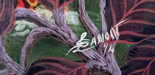 Lamarre Sanon 24"x36" Tropical Water Birds 1994 Oil on Canvas Unframed Painting #2CZ