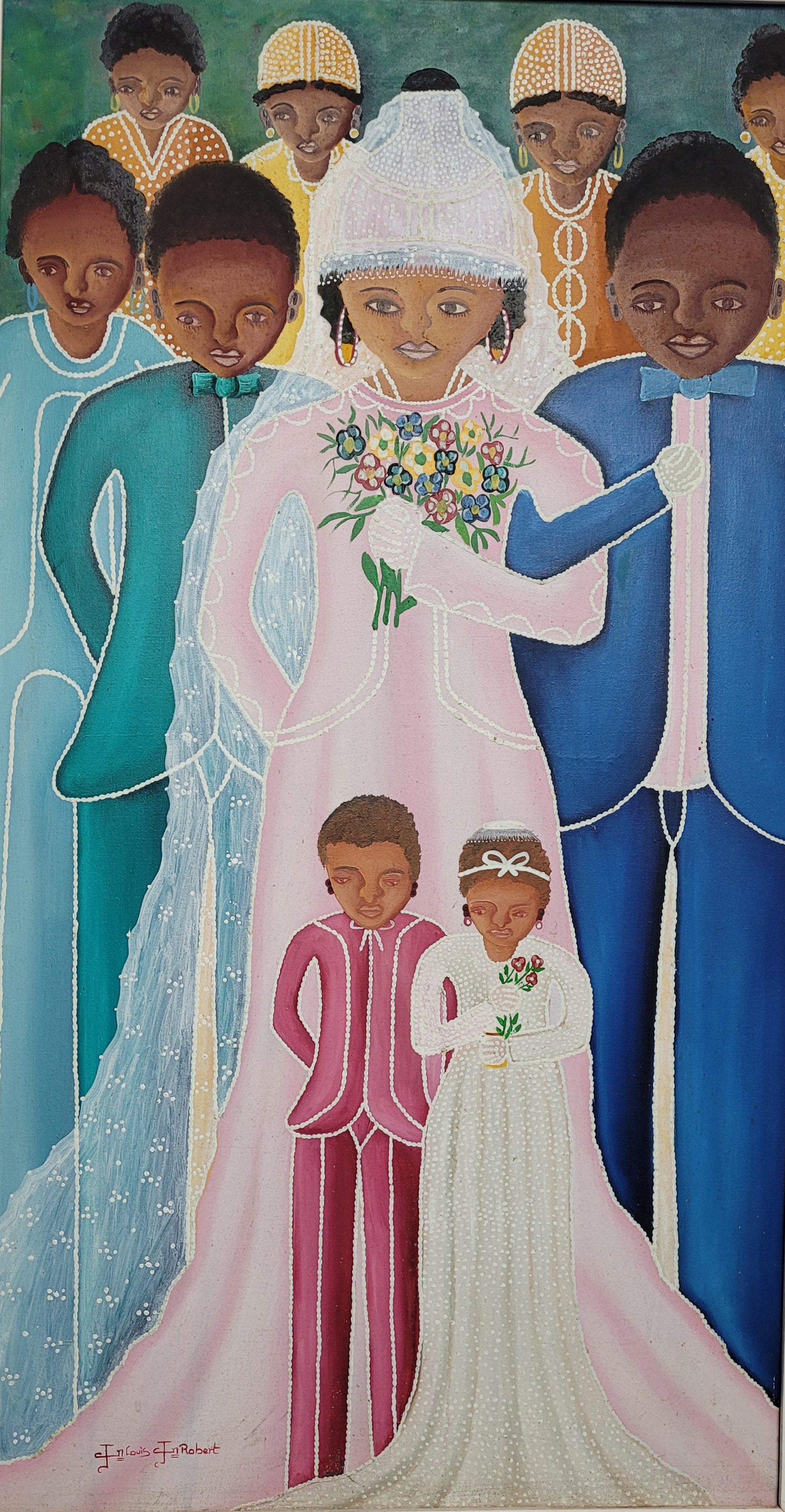 Jn-Louis Jn-Robert 36"x20" Weddings c1980 Oil on Canvas Unframed Painting #1WF