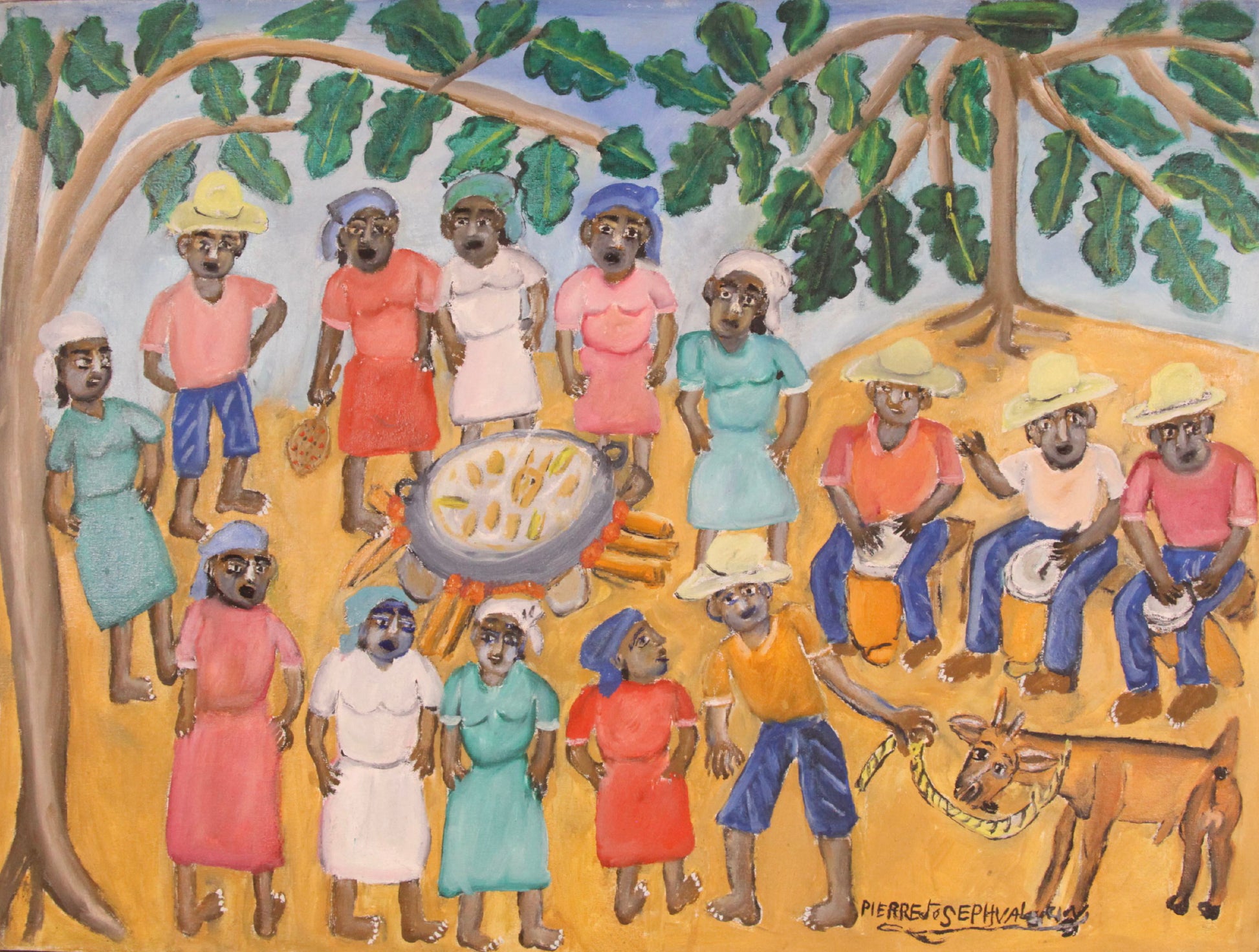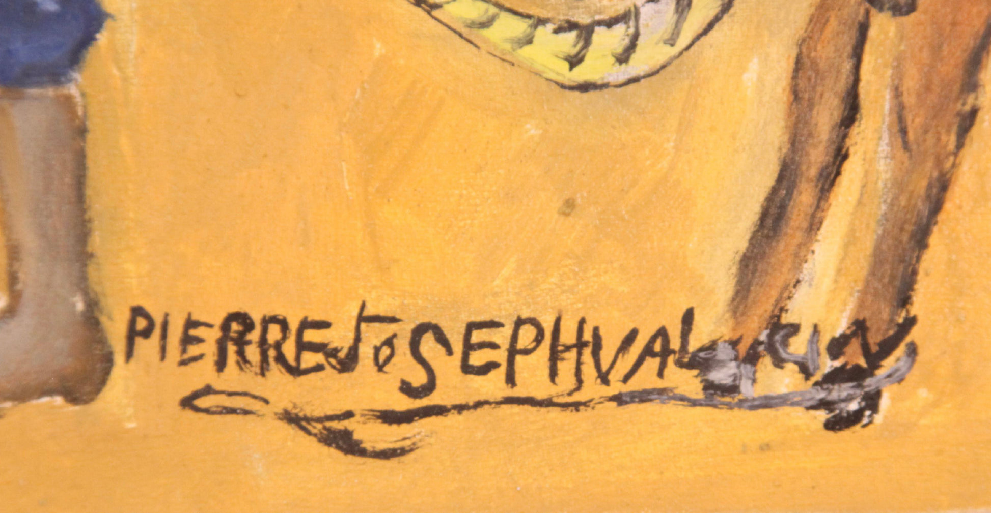 Pierre-Joseph Valcin was born in Port-au-Prince in 1925 and made significant contributions to the art world. Before establishing himself as a painter, Valcin worked as a mechanic and stone mason. His journey into painting began in 1959 when he was introduced to the Centre d’Art by his half-brother, the renowned painter Gerard Valcin. Under Gerard's guidance, Pierre-Joseph sharpened his skills during his first year at the Centre d’Art. While his work reflects Gerard’s influence, it is notably looser, less stylized, and more intuitive. Pierre-Joseph Valcin kept creating art through the 1990s and left a remarkable legacy when he died in 2000. His works are part of the permanent collections at well-known institutions, including the Musée d’Art Haitien, the Davenport Museum of Art in Iowa, the Waterloo Museum of Art, and the New Orleans Museum of Art. His art has also been featured in important publications such as Haitian Arts (Nadal-Gardere and Bloncourt, 1986), Haiti: Art Naif, Art Vodou (1988), Dialogue du Réel et de l’Imaginaire (1990), Haiti: Actualities and Belief (Roche, 1990), and Island on Fire (Demme, 1997).