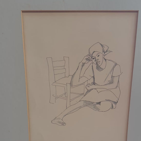 Luce Turnier (1924-1995) 11"x9" The Pensive Lady 1987 Drawing with Crayon Framed#1GSN-NY