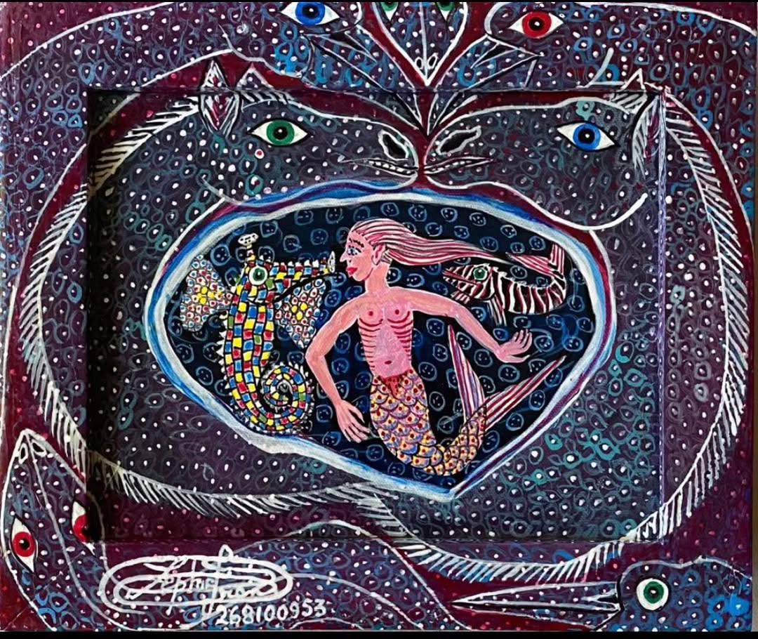 Frantz Zephirin 10"x12 La Sirene Oil on Canvas Painting Hand-Painted Encrusted Frame #16JN-HA