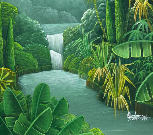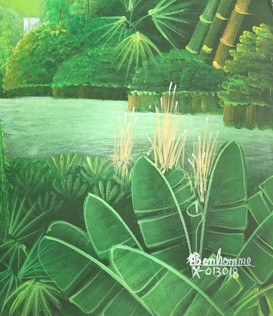 Albott Bonhomme 20"x16" Two Birds Bonding, River & Trees 2022 Acrylic on Canvas Unframed Painting #26MFN