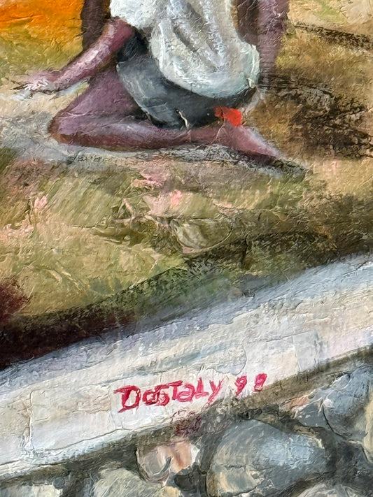 Emmanuel Dostaly 36"x24" Daily Life 1998 Acrylic on Canvas Painting #2BB