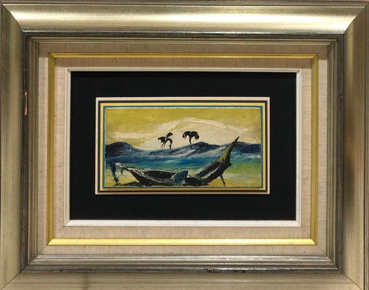 Charles Obas (1927-1969) 4"x8" Naufragio c1960 Óleo a bordo Enmarcado #1FC