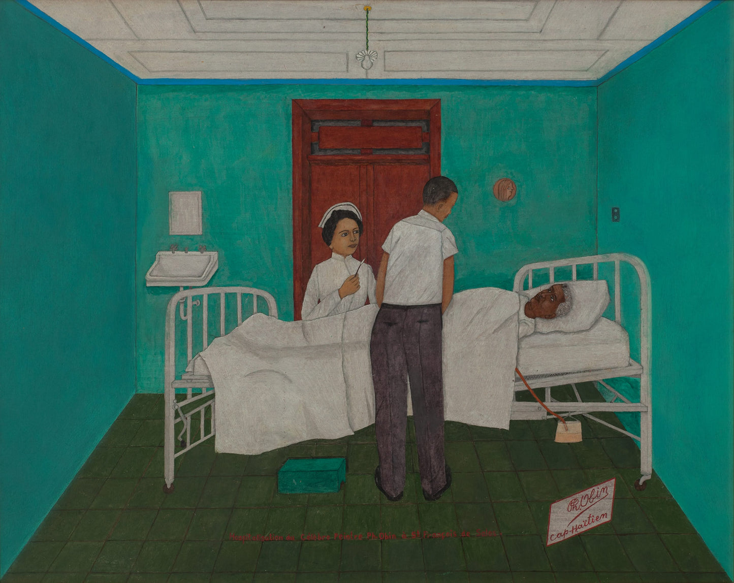 Philome Obin (1891-1986) 16"x20" Le Malade #2-3-96GSN-HA Óleo a bordo - No a la venta