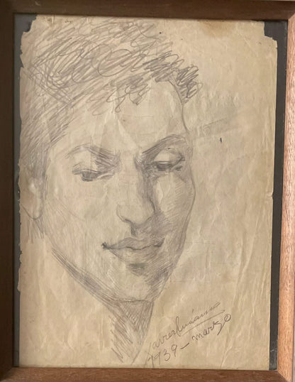 Xavier Amiama (1910-1969) 10.5"x7" El comulgante 1939 Dibujo a lápiz y tinta sobre papel #1MFN