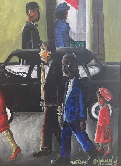 Wilson Bigaud is considered as one of the great masters of Haitian art. Born in 1931, he began his painting under the direction of famous Haitian pioneer, Hector Hyppolite when he was only fifteen years old. A golden light and warm colors characterized his early works. He used to paint wonderful, humorous paintings in the relative solitude of Petit Goave. Bigaud is represented in the permanent collection of the Museum of Modern Art in New York as well as in major art Galleries in Haiti and abroad. He passed away in 2010. Wilson Bigaud "..uses an innate sense of color effects to model a variety of forms. At the end of the 1950's, numerous depressions ruined his style." Peintres Haitiens by Gerald Alexis. Get the Book Now!