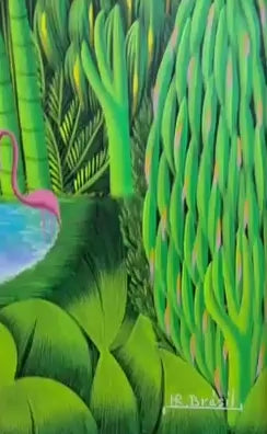 Henri-Robert Bresil (1952-1999) 30"x40" Oiseaux volants, Ibis, Pélicans c1990 Huile sur toile #3GSN-MIA