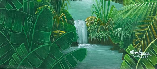Albott Bonhomme 24"x20" Végétation luxuriante et cascades 2021 Acrylique sur toile #14MFN