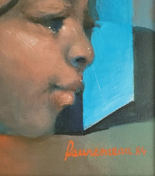 Lyonel Laurenceau 10"x8 » Portrait de petite fille 1984 Acrylique sur toile Peinture encadrée #2MA