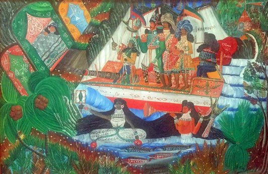 André Pierre (1914-2005) 16"x24" Ogoun, Erzulie Freda & Dambala Wedo Huile sur toile #1PM