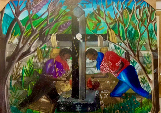 André Pierre (1914-2005) 24"x36" "Cérémonie Erzulie Malade" 1972 Huile sur carton #14-3-96MFN