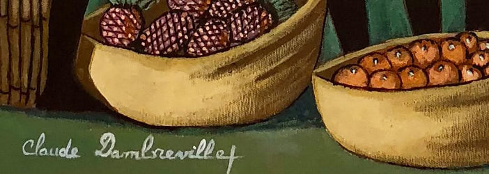 Ce magnifique tableau de 24"x20" est dûment signé par le célèbre artiste haïtien Claude Dambreville. Il représente une scène figurative d'une journée de négociation dans les rues d'Haïti. Il s'agit d'une acrylique sur toile datée de 2018, vendue non tendue et non encadrée. « L'œuvre de Dambreville repose essentiellement sur les jeux d'ombre et de lumière » ( Peintres Haïtiens de Gérald Alexis). Pour obtenir le livre, cliquez ici !