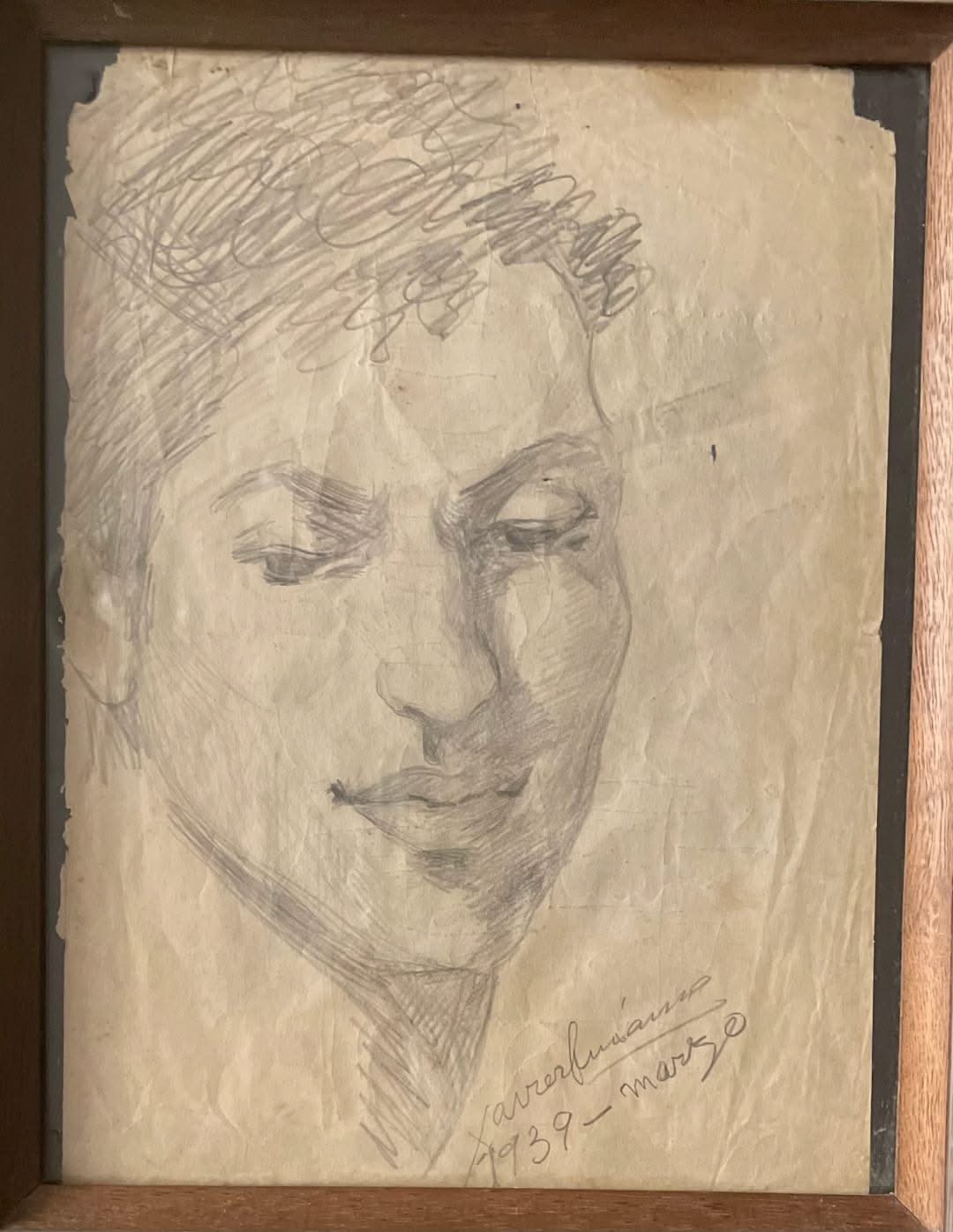 Xavier Amiama (1910-1969) 10,75"x8" SANS TITRE 1939 Crayon et encre sur papier Dessin encadré #37-3-96MFN