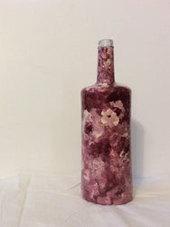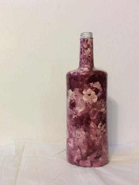 Bouteille peinte à la main par l'artiste haïtienne Rose-Marie Lebrun 14"x6"x3.5 » Floral rose #5MFN
