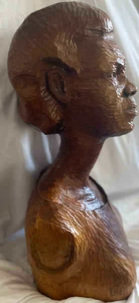 Ludovic Booz (1940-2015) Sculpture en bois sculpté à la main de buste de dame 20"x10"x9" #1SY