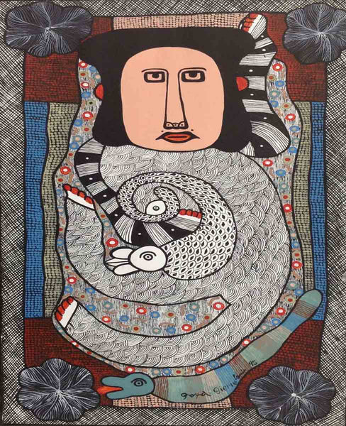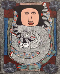 Prospère Pierre-Louis (1947-1995) 32"x17" Le Serpent 1995 Huile sur toile #1106GNHA