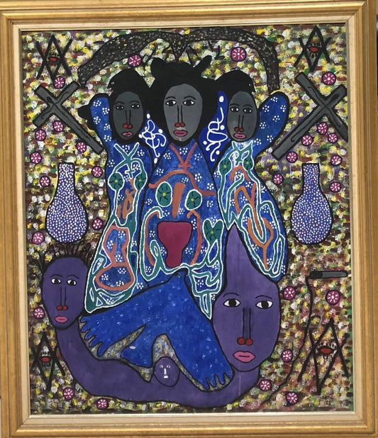 Payas (Pierre-Sylvain Augustin) 30"x40" Blue Spirits 1998 Acrylic on Canvas #J74