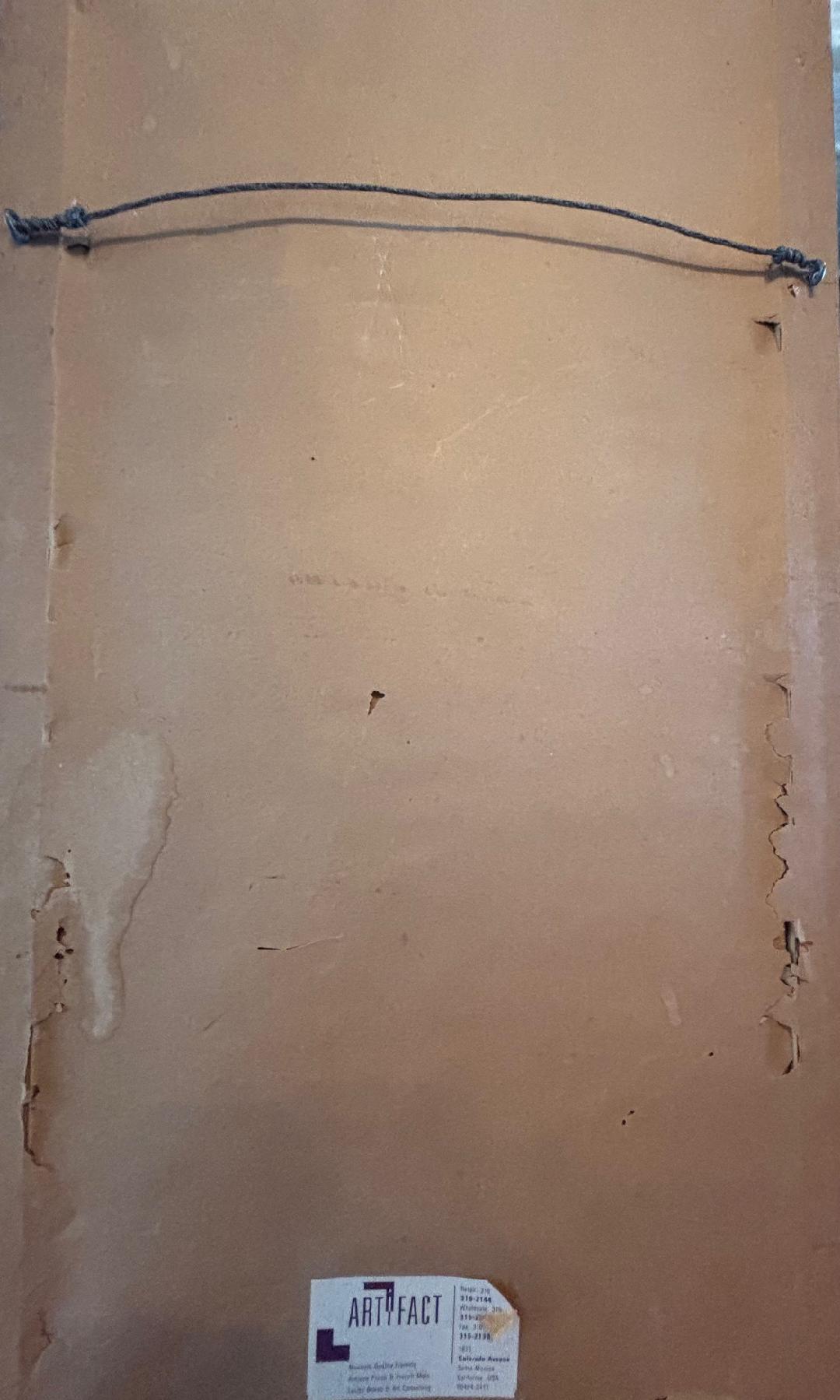 This original oil painting on masonite by the late Haitian artist Pauleus Vital is a striking piece that he signed and dated in the lower right corner on March 26, 1976. Characterized by a primitive style, it vividly depicts a village scene by the river. While it does show some minor damages due to its age, this artwork is being offered as is. It comes from a private collection in California. A certificate of authenticity will be provided by the gallery upon receipt of payment
