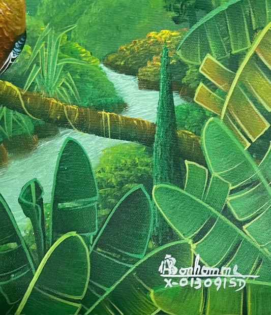 Néhémy Jean (1931-2007) 36"x24" Gossiping 1968 Oil on Canvas Panting #3-3-96AN