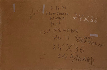 Andre Pierre (Haitian, 1914-2005) Vodou Ceremony Unframed Oil on Board Painting 24"h x 36"w #6-2-95GSN-NY