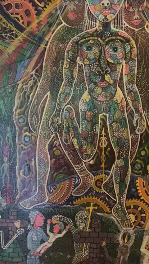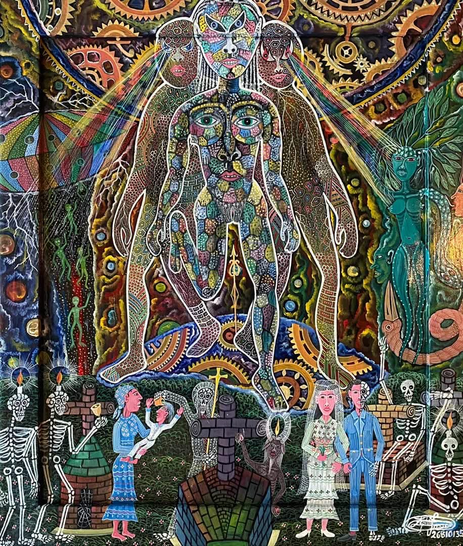 Frantz Zephirin 26.5"x22.50 "La Descente de l'Esprit et l'Omega" 2023 Oil on Board- Encrusted Painted Frame Painting #13JN-NY