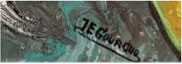 J.E Gourgue typically painted scenes of rural Haitian life and vodou ceremonies. Gourgue, who had no formal training, often combined flowers, mountains, skeletal trees, peasants and their huts, and voodoo symbolism in a personal style that combined surrealism and naive art. "He is beyond dispute the leading figure in modern Haitian painting."