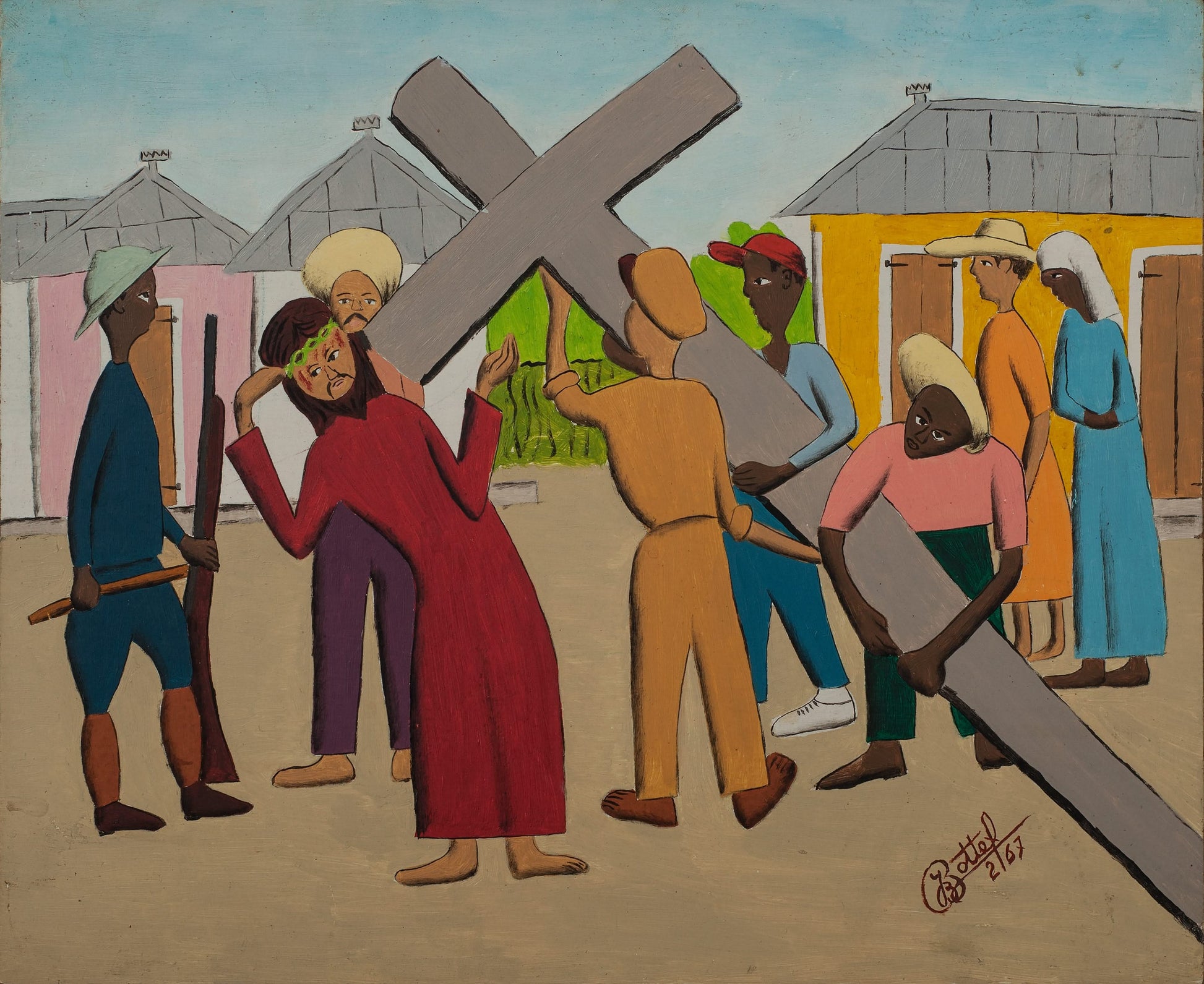 Jean-Baptiste Bottex was the elder brother of the better-known Seymour Bottex. He is a naive painter specializing in biblical topics and daily scenes from Haitian life. He exhibited locally at the Art Center and abroad (Peinture Haitienne by Marie Jose Nada & Gerald Bloncourt, Editions Nathan, 1986). Jean-Baptiste worked with the famous Haitian pioneer artist Philome Obin, though little influence of Obin's 'northern school' is evident in his work. He later maintained an atelier of his own with his brother S.E Bottex, training artists.