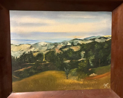 Louverture Poisson (1914-1985) 15"x19.5" Haiti Mountains 1959 Oil on Canvas Painting #1AT