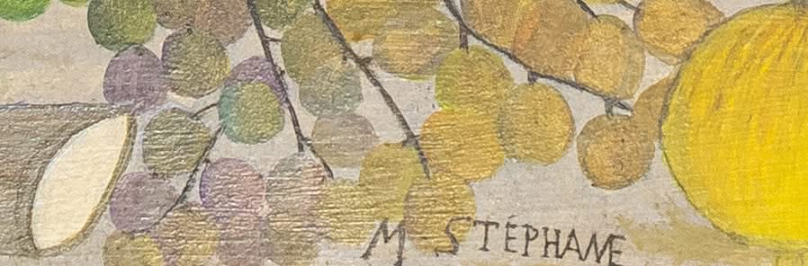 Micius Stephane (1912-1996) 20"x20" Still-Life/Fruits 1980s Oil on Board Framed Painting #5SS