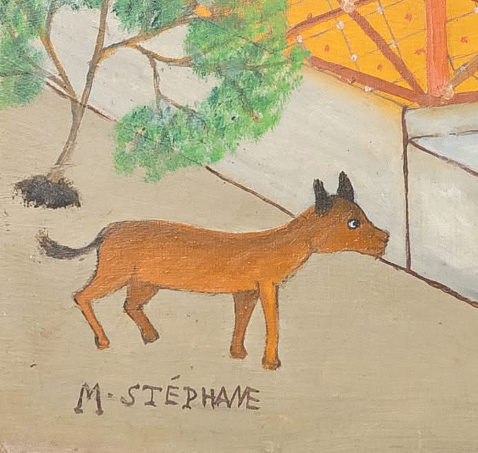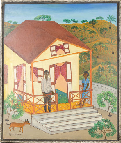 Micius Stéphane was born in Bainet, a small village on Haiti’s southern coast in 1912 and died in 1996. Micius earned his living for years a cobbler, a “Sunday sculptor”. In 1946, he met Dewitt Peters and began his painting career at the Art Center. A naïve painter, he renders charming scenes from daily life in Haiti with minute accuracy. He is considered one of Haiti’s eminent contemporary artists. From 1961 to 1979, he exhibited in Germany, the United States, England, Italy, and France. André Malraux sponsored one of his Paris exhibitions. His art is prized by collectors and is in the permanent collections of Musée d’Art Nader and Musée d’Art Haitien of College Saint Pierre, both in Haiti and the Detroit Institute of Arts, in Detroit, Michigan. His children, Peters Stéphane and Edith Stéphane are also painters.