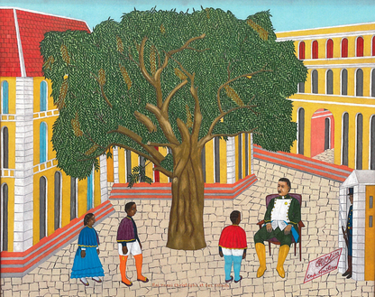 Philome Obin (1891-1986) 16"x20" King Henri Christophe With His Children Oil on Board Painting Framed #1CS