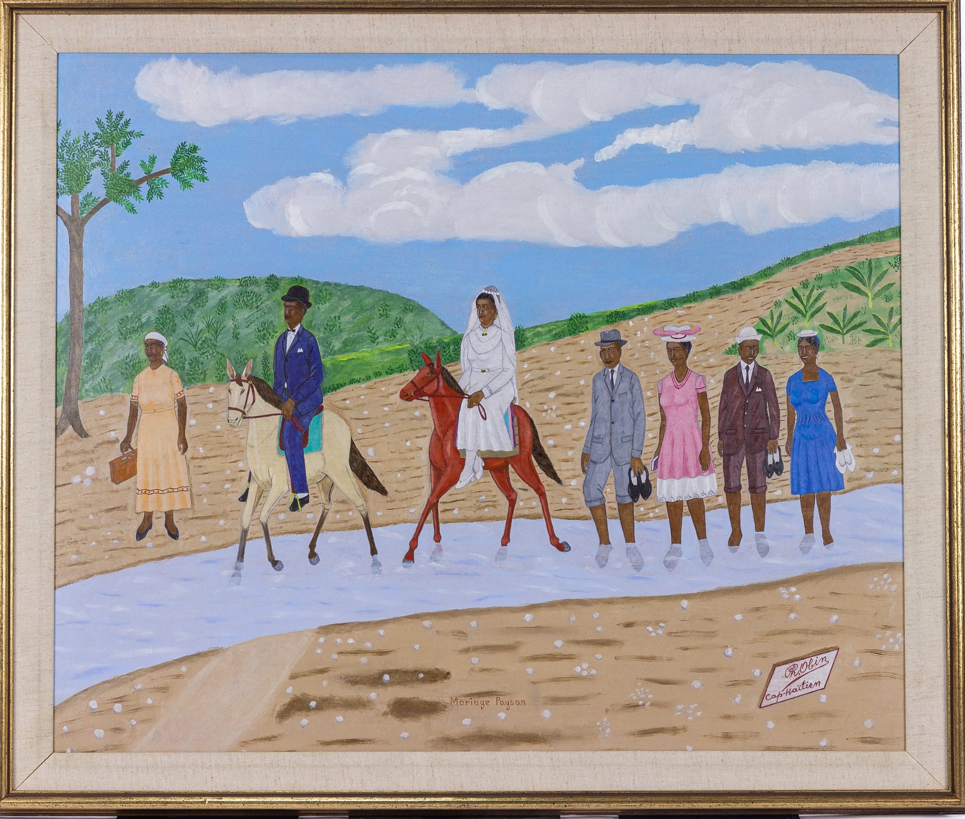 Philome Obin (1891-1986) 19 ½" x 26 ½" Peasant Wedding c1980 Oil on Board Framed Painting #30SS