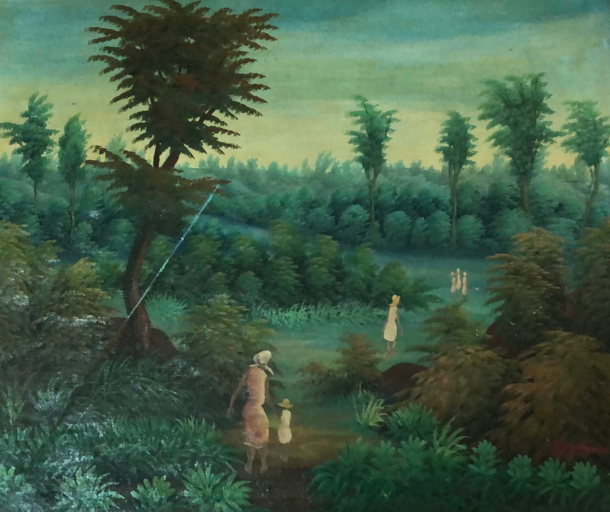 Raymond Dorleans (1947-2000) 20”x24” Figures in a Verdant Landscape c1980 Oil on Canvas Painting#4YN