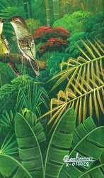 "Birds Kissing" is an original 12"x16" contemporary painting representing a tropical paradise with two birds kissing in lush vegetation. It is an original canvas acrylic, signed on the lower right side, with the inscription below X013028. It sold unstretched and unframed and will be shipped from New York.