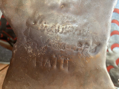 His work, renowned and sought after worldwide, including European and American museums, makes him Haiti’s most excellent tin and wrought iron sculptor. He believes his talent is a gift from God. His creations vary from the abstract to the figurative. Steeped in Voodoo traditions, Liautaud creates mermaids, devils, fantastical animals, and traditional deities. (La Peinture Haitienne/ Haitian Arts by Marie-José Nadal and Gérald Bloncourt, Editions Nathan, Paris, 1986, pp. 71)