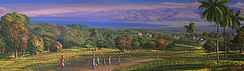 Self taught Haitian artist, Jean Adrien Seide was born in Cayes in 1952. He moved to Venezuela when his father passed away. He paints landscapes that are extremely structured, with a series of fields spreading out towards a distant horizon. At first glance his paintings look representational but a more detailed examination leads to a fascination and the fantastic element predominates over the immediate reality. He has exhibited in Haiti, Ottawa, Montreal and Miami. "Horizontal lines evoking fields cross the vertical lines of trees to create a coherent landscape." (Peintres Haitiens by Gerald Alexis).Get the Book Now! His art is internationally collected and exhibited.